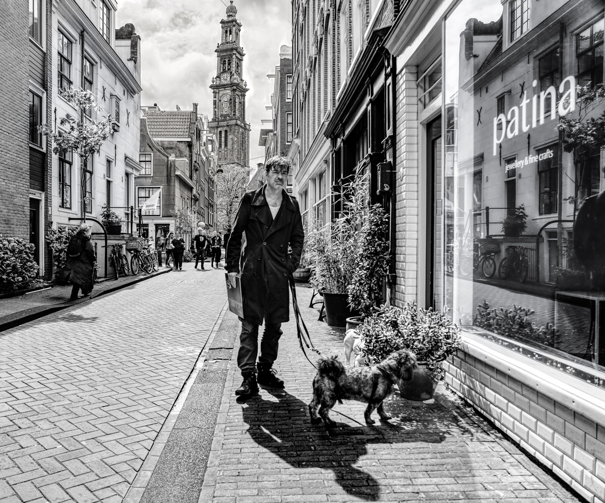 Late morning in Amsterdam the city is just coming to life. A few tourists, a dog walker, enjoy the evanescent tranquillity before the streets fill and the day begins in earnest.